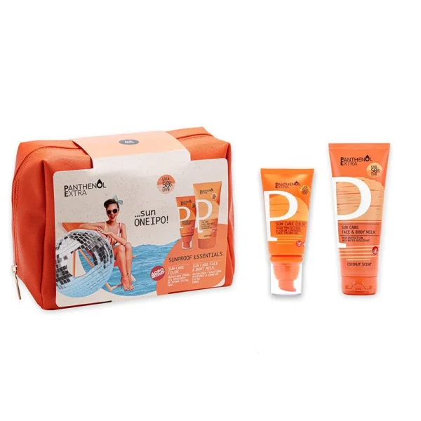 Panthenol Extra Promo Sunproof Essentials με Sun Care Color SPF 50 Αντηλιακή Κρέμα-Gel Προσώπου με Χρώμα, 50ml, Sun Care Face & Body Milk SPF 50 Αντηλιακό Γαλάκτωμα για Πρόσωπο & Σώμα, 100ml & Δώρο Νεσεσέρ