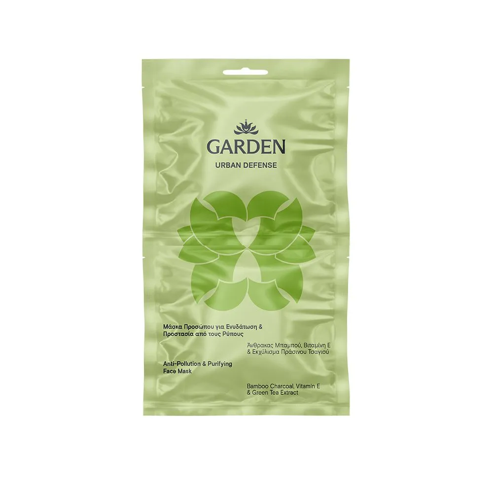 GARDEN URBAN DEFENSE | Μάσκα Προσώπου για Ενυδάτωση & Προστασία από Ρύπους με Άνθρακα Μπαμπού & Εκχύλισμα Πράσινου Τσαγιού 2X8ML